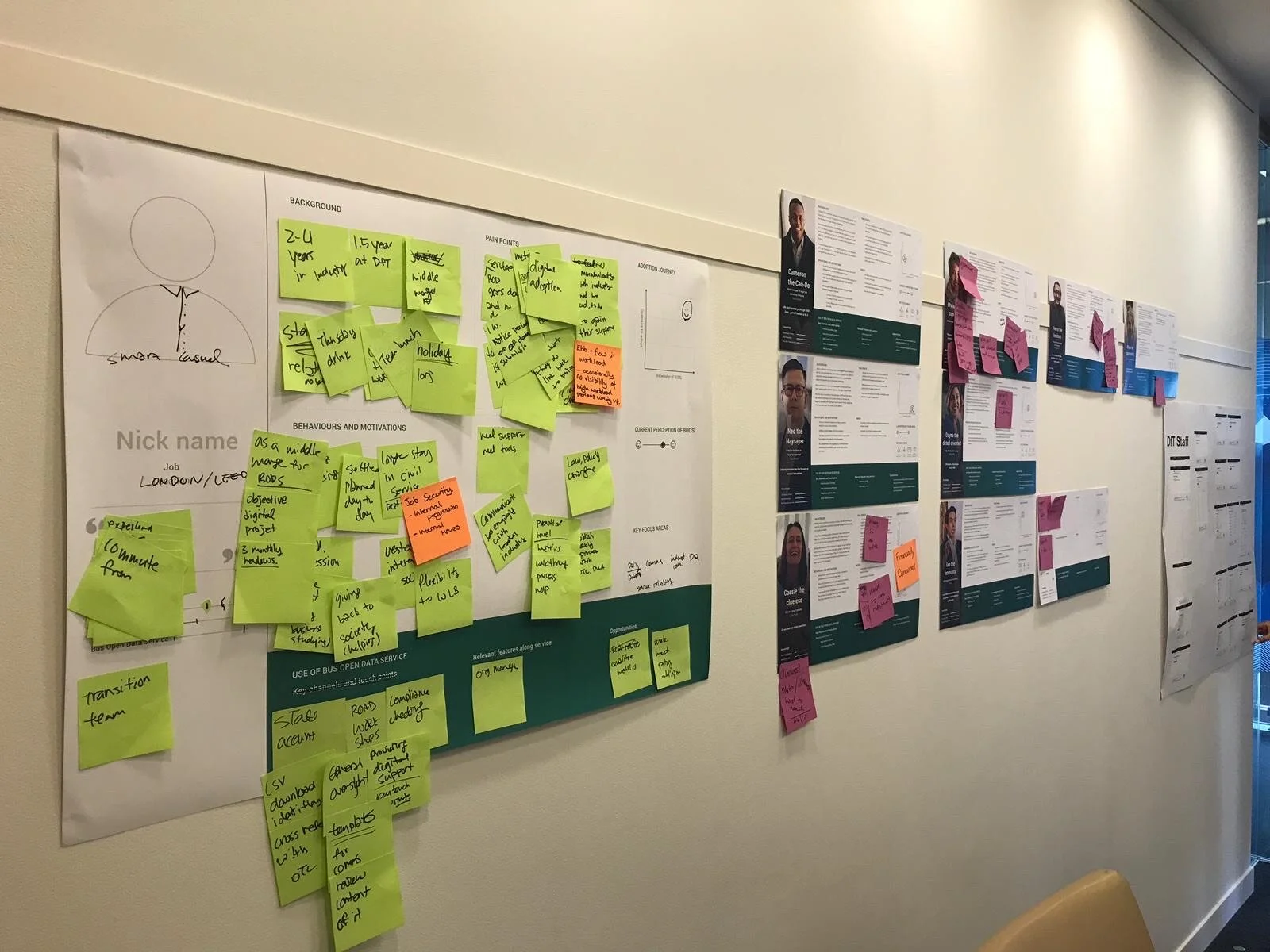 With the research we conducted, we were able to create personas for the different user types we identified. We held co-creation workshops and persona validation sessions with the DfT stakeholders as well as an implementation groups consisting of a group of industry professionals, all of whom joined to give input to the new policy design and to evaluate the progress of open data initiative.